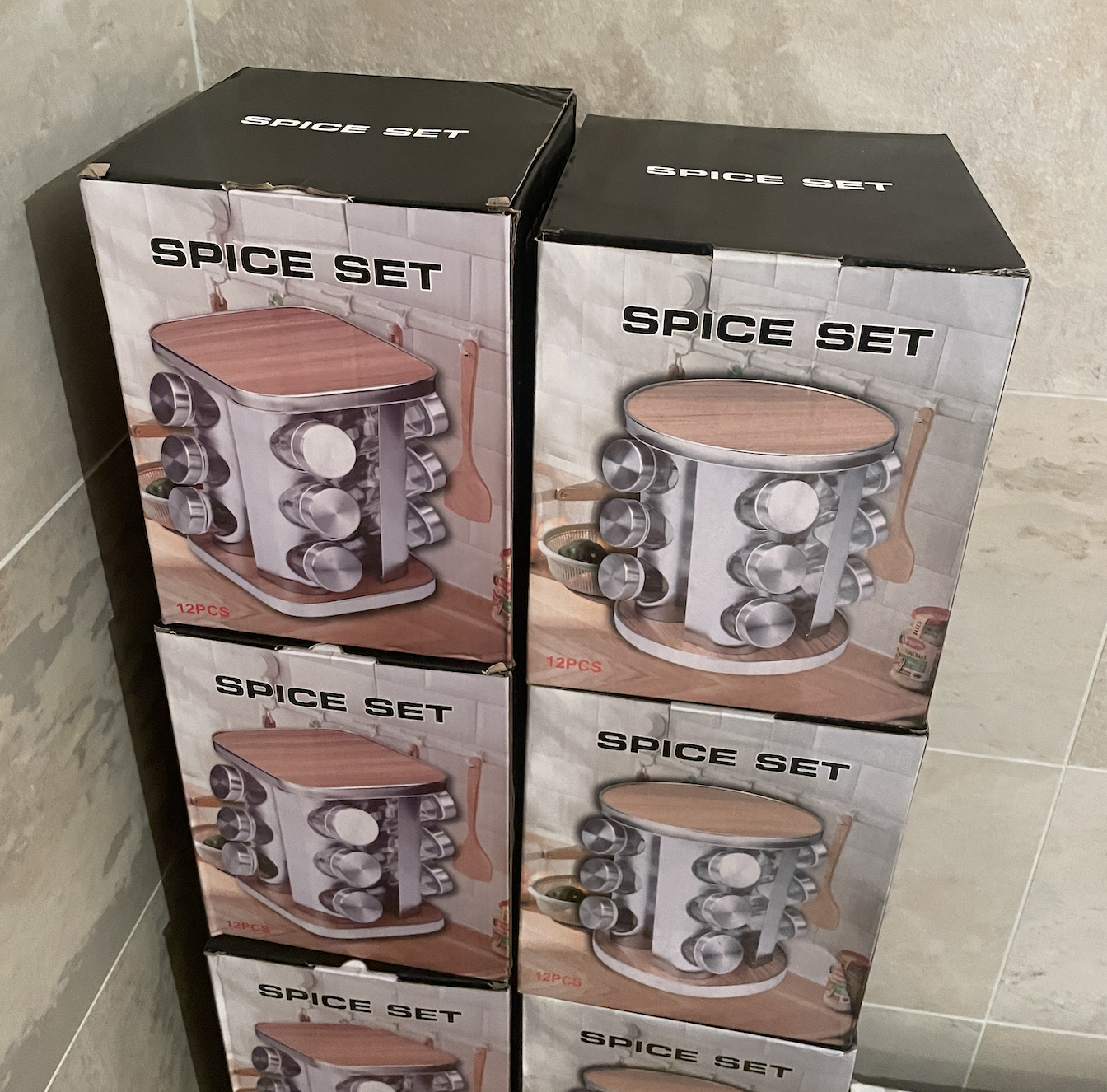 Prieskonių indelių rinkinys mediniame stove