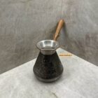Originalus rankų darbo vario puodelis, viduje padengtas skarda, su medine rankena. Turkiškos kavos ruošimui, tūris – 800 ml. Patogus ir praktiškas, saugus naudoti. Netinka indukcinėms kaitlentėms. Negalima plauti indaplovėje. Pavaizduoti ornamentai nuotraukoje, gali skirtis realybėje.