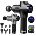 Masažavimo įrenginys turi 30 greičio lygių. Komplekte yra 6 masažuoklio antgaliai ( galvutės ) Lengvas ergonomiškas dizainas, turi LED ekraną greičių reaguliavimui. Baterija 16.8V, 2500 mAh, veikimo trukmė 4-7 val, įkrovimo trukmė apie 3 val.