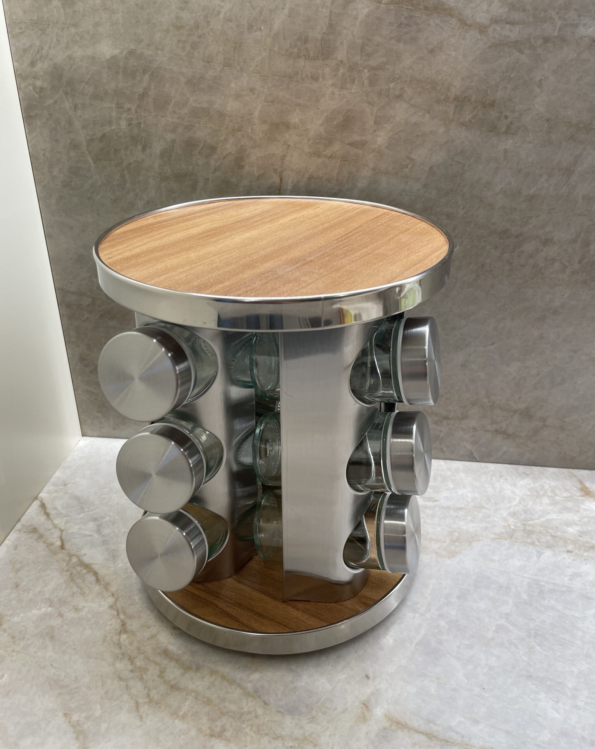 Prieskonių indelių rinkinys mediniame stove 12vnt